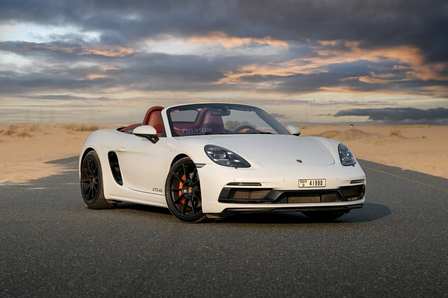 Riding a powerful car model in Dubai and Abu Dhabi is the most manageable goal to achieve with Phantom Car Rental. If you're looking for a suitable car model that can easily enhance your trip, we are here to help! We offer the spectacular Porsche Boxster GTS 2021 for those seeking power mixed with luxury on their ride. This sports car rental in Dubai comes equipped with everything you need to create unforgettable memories in this lovely city. It has the perfect exterior shape to showcase your power combined with the most outstanding performance you can think of.